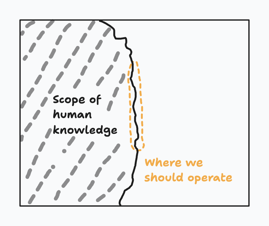 We need to be the truth-seeking biologists and horticulturists, not florists; we need to be Georg Mendel taking careful note of cause and effect rather than a superficial observer. I’m saying this on an individual company-level, as well as a market level. Only by studying something carefully can we know it. This assumes that we believe in something being knowable, of course. The obvious conclusion to seeing investing as a knowledge-enhancing activity is that in order to do great investments, we need to operate on the fringes of what is known. Some things should be more certain, like the physics governing the fundamental technology, or that someone will want to buy it, should it work (aka. “Big if true”). Other things can be more uncertain. What we don’t want, are the companies moving entirely within the scope of human knowledge—the playbook companies (note: my own em dash). We are not interested because those companies will be funded by other pots of money, so our dollars are not really value-adding.